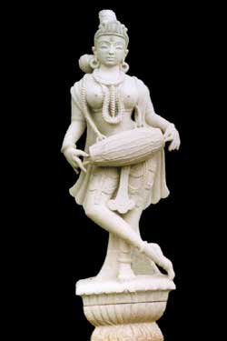 Lady with Drum- Shown here is a lady musician playing musical Instrument. This was a common scene in Royal Courts of Medieval India. They were known as Devadasis.
